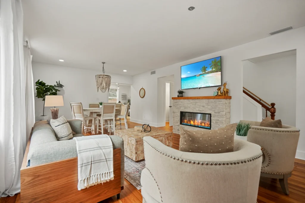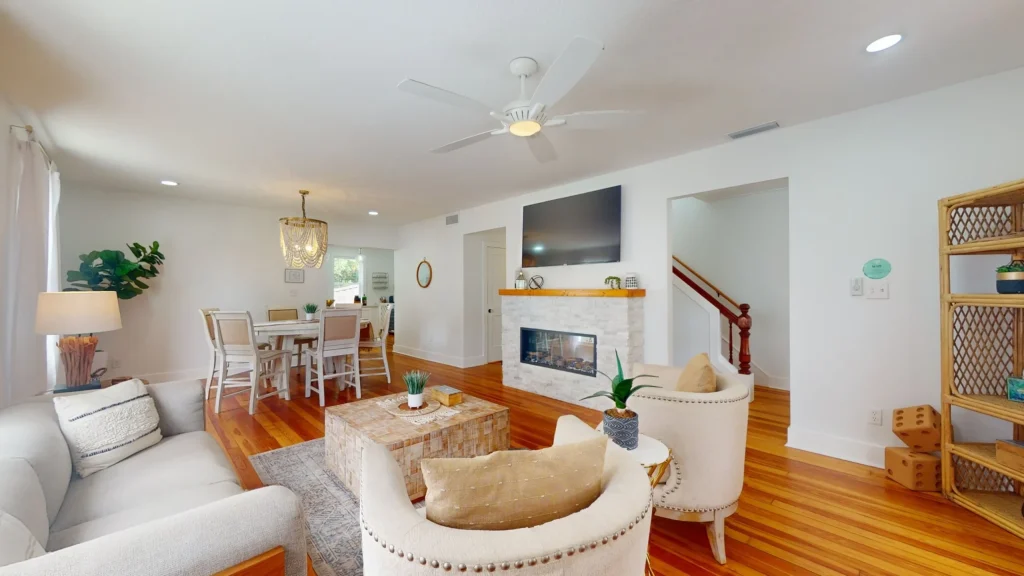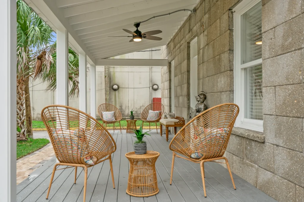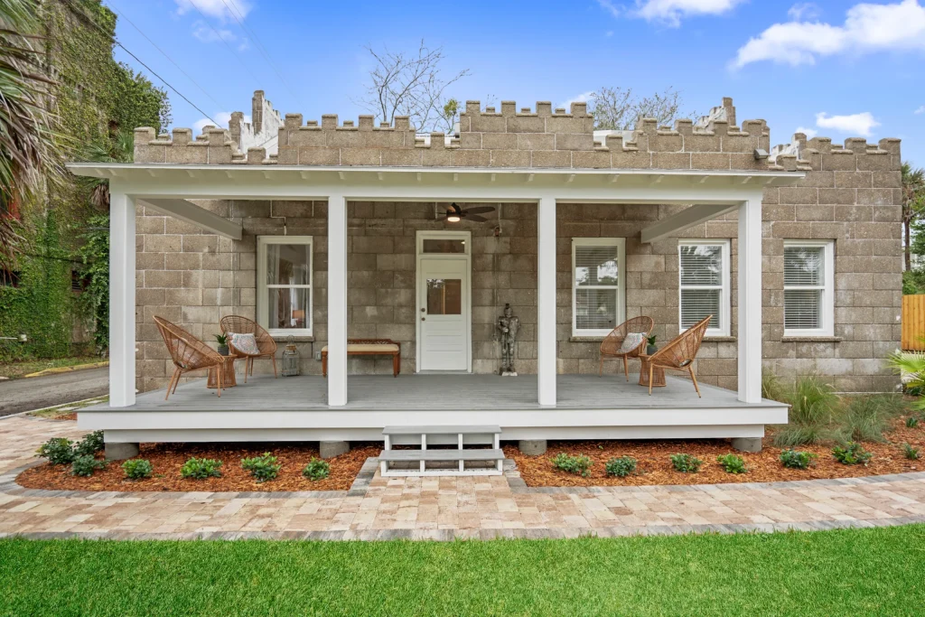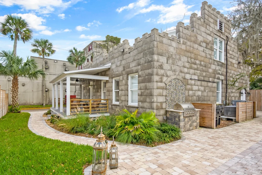 The property is located on Shenandoah Street in Saint Augustine, Florida, near Jacksonville and Palm Coast. The building has a long and wonderful history! Once the carriage house for Castle Warden (now Ripley’s Believe It or Not) back in the 1800’s, it was carefully converted in the early 1900’s into an art gallery and then bed and breakfast. In 2020, the current owners acquired the property and lovingly renovated it into the gorgeous event space and colonial-modern 7 bedroom mansion you see in the photos. With a dedicated bridal suite/get ready space, 3 unique indoor and outdoor areas to convert into the perfect event space, tables and chairs available as well as access to our curated list of exclusive vendors (bar services, caterers, DJs, party stylists, private chefs and more), we know Castle Garden will fulfill your every hope and dream for your small wedding, vow renewal, rehearsal dinner or goodbye brunch!
